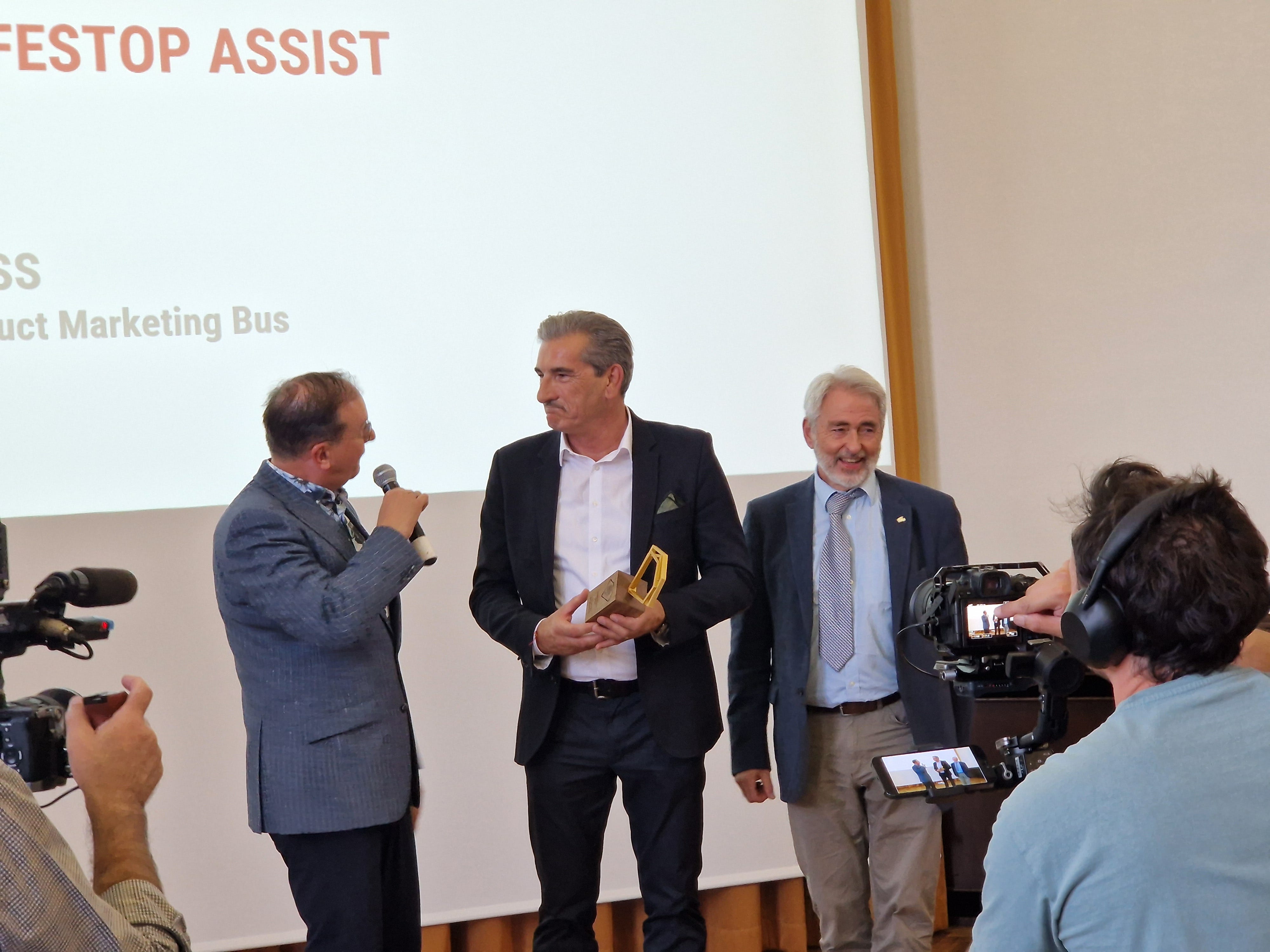 Une autre catégorie récompensée est la conduite assistée numériquement, avec MAN remportant un Award pour son SafeStop Assist, répondant à un enjeu de sécurité crucial : la perte de contrôle du conducteur pour raisons médicales ou autres. En intervenant activement, il amène automatiquement les bus interurbains et autocars à un arrêt en toute sécurité. Il combine une nouvelle direction électrique avec la fonction obligatoire Attention Assist, enrichie par plusieurs systèmes d’assistance supplémentaires allant au-delà des exigences de la réglementation européenne GSR2.