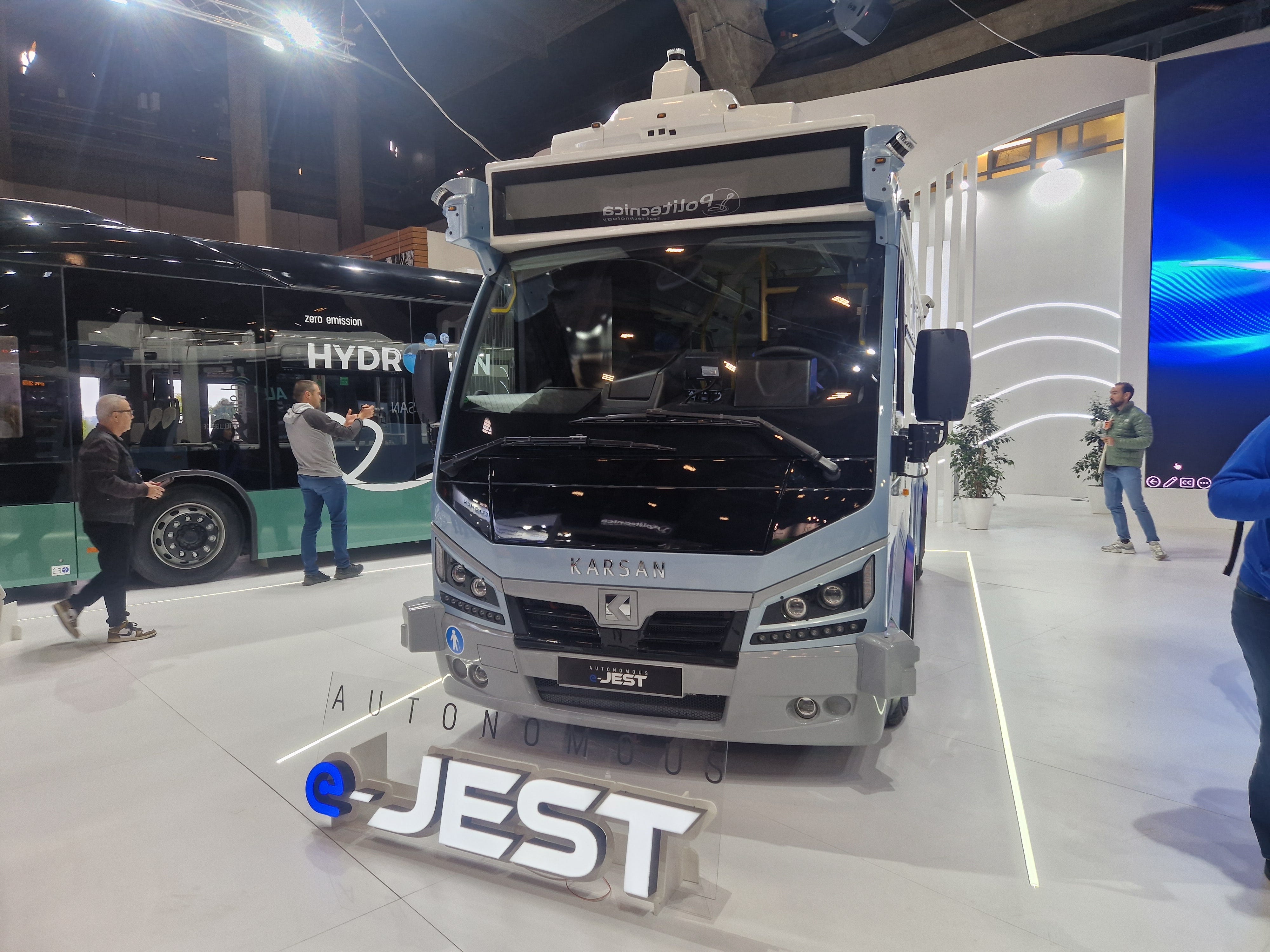 Le Karsan e-JEST, midibus électrique de 6 mètres qui existe depuis plus de 5 ans, passe désormais aussi en version autonome, avec une capacité de 19 passagers, un moteur BMW de 135 kW, une batterie de 105 kWh offrant jusqu’à 260 km d’autonomie et une recharge rapide en 1h20, il combine confort (suspensions indépendantes) et sécurité : un ensemble de 23 capteurs (LiDAR, radar, GNSS, caméras) assure une vision 360°.