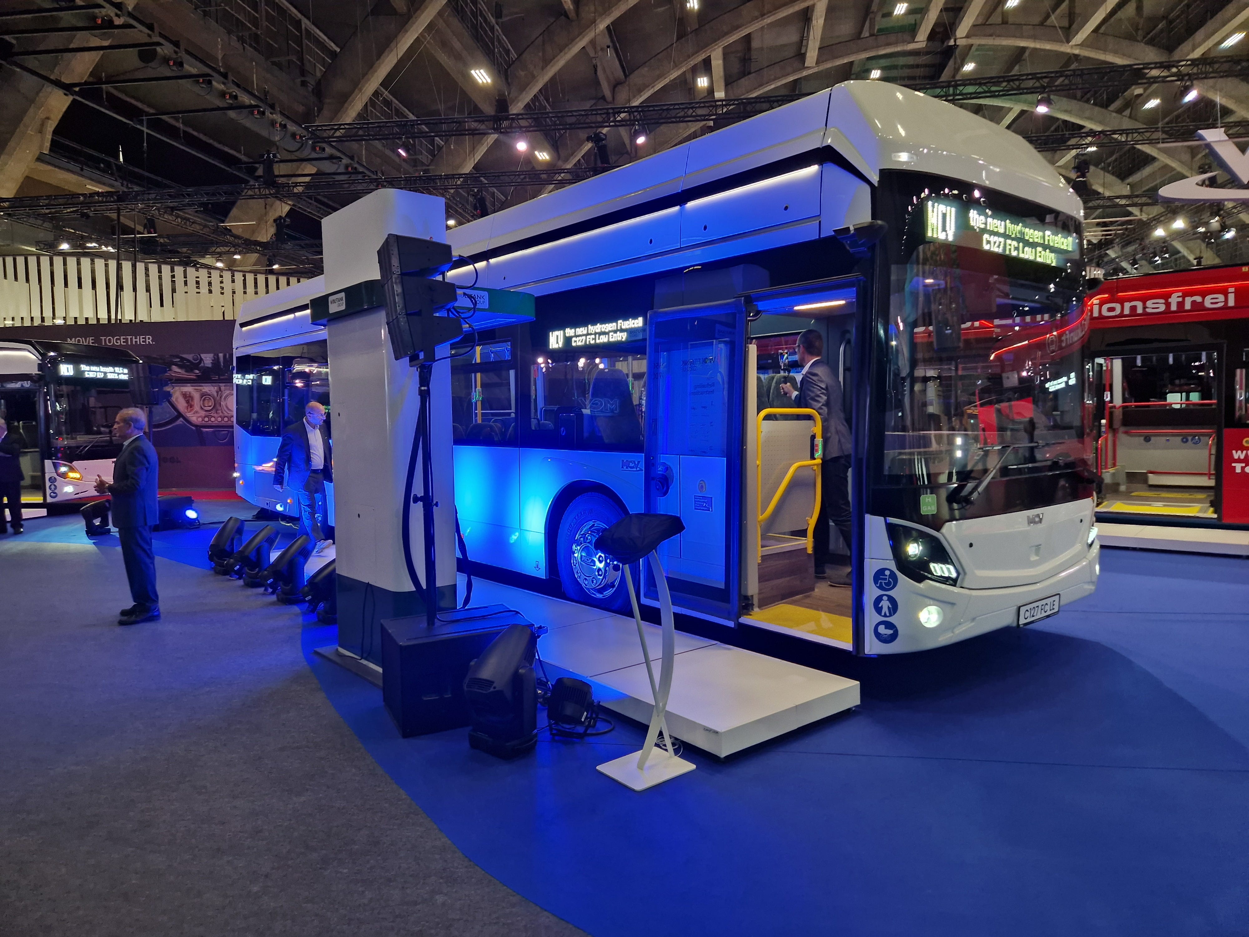 MCV, Manufacturing Commercial Vehicles, un constructeur égyptien, a dévoilé ce vendredi matin son nouveau C127 FC Low Entry, un bus de 12,1 mètres (et 14 tonnes) qui tourne à l’hydrogène, grâce à une pile à combustible de 100kW et un moteur de 410kW. À bord, 43 personnes peuvent s’asseoir et 36 autres peuvent encore prendre place debout.