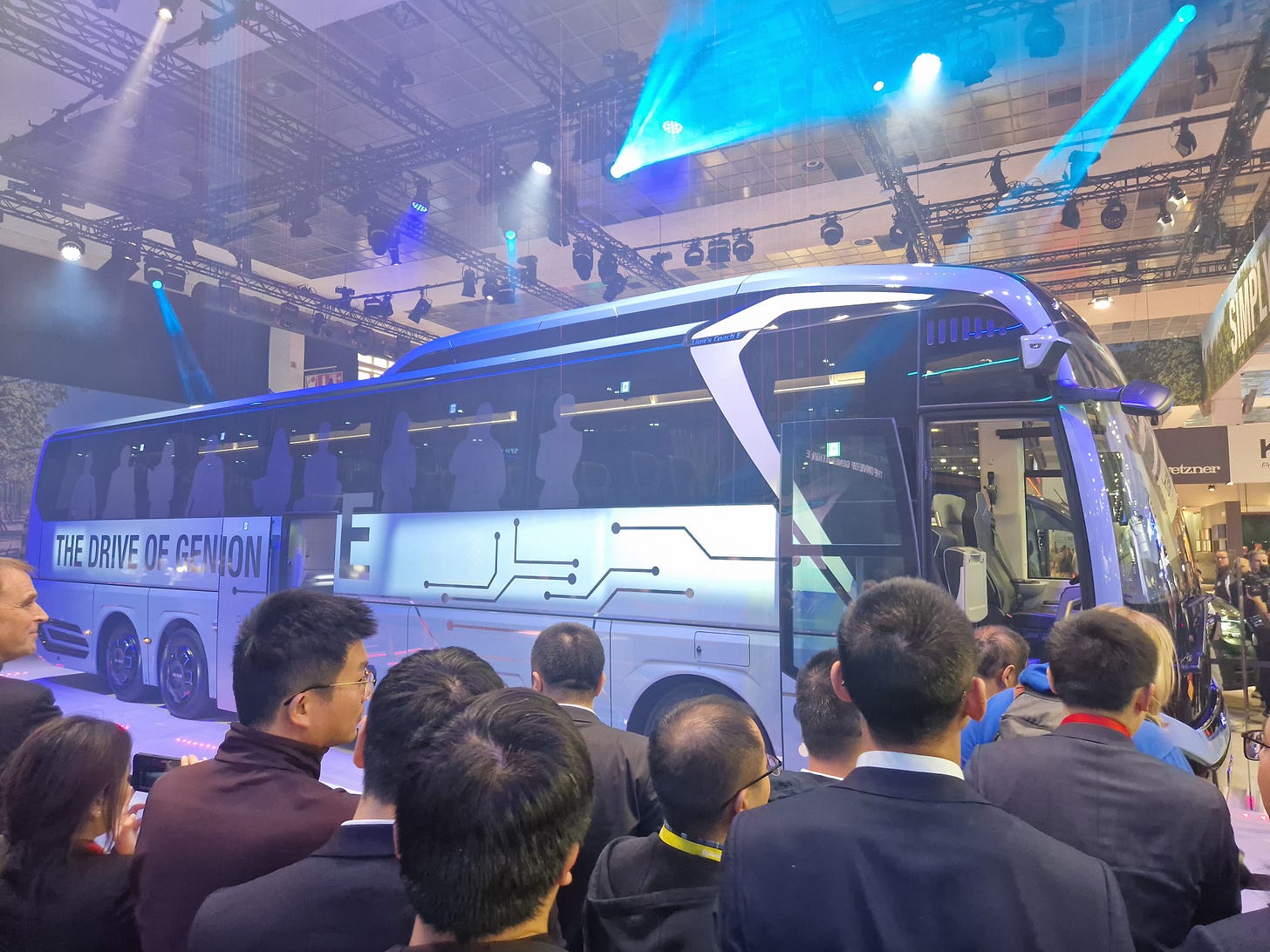 Ce vendredi également, le constructeur égyptien Geyushi a présenté son autocar CAIRO Volvo, nommé d’après la capitale égyptienne. Il se veut être comme un joyau du transport longue distance avec “un design extérieur élégant, des intérieurs luxueux, des systèmes de sécurité avancés et une technologie économe en carburant”.