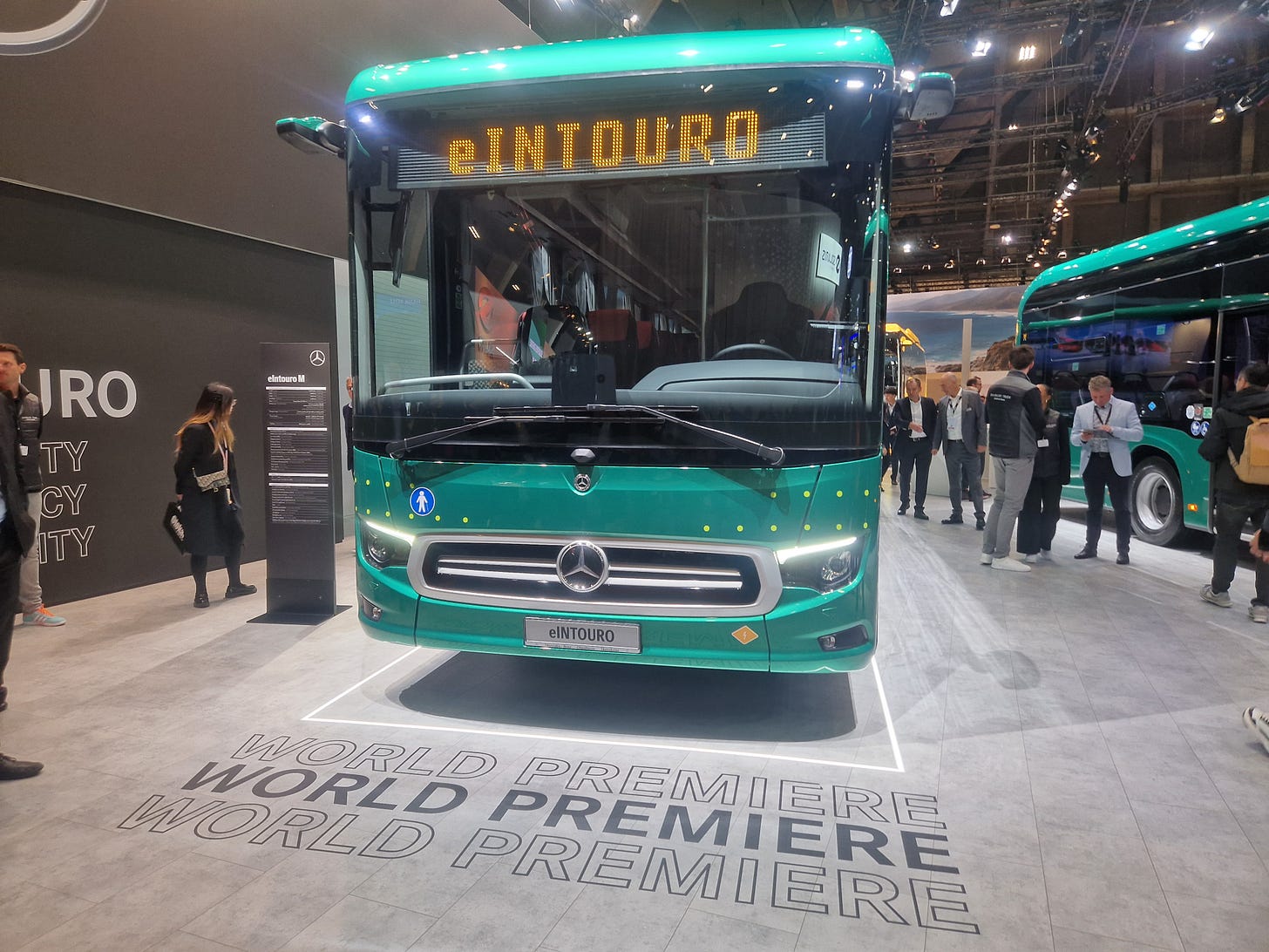 Daimler Buses (SETRA, Mercedes-Benz), s’est contenté de présenter et dévoiler son nouveau Mercedes-Benz eIntouro, la version électrique de son bus interurbain Intouro, en diesel. “Cela signifie que Daimler Buses rend désormais possible le passage à l’e-mobilité pour les lignes interurbaines classiques, les trajets scolaires et les petits trajets.”
